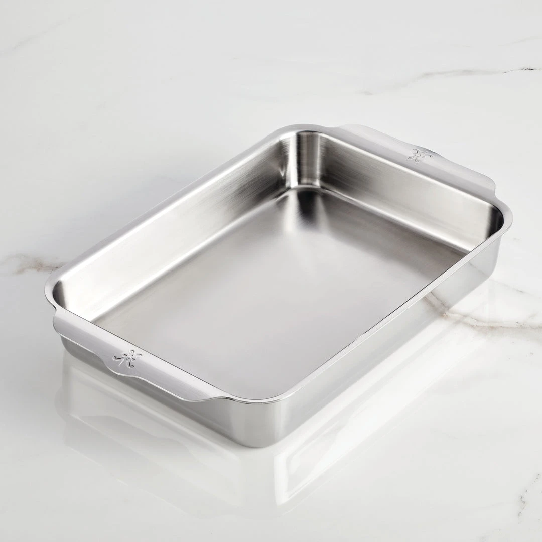 The 9″ x 13″ rectangular baker is the perfect size for family-sized casseroles and fudgy brownies, an essential piece for holiday entertaining.