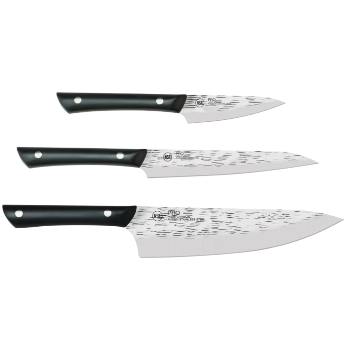 This beautiful set includes everything you need to get cookin’. The 8-inch Kai PRO Chef’s Knife is your go-to knife for most day-to-day slicing and dicing tasks. The Kai PRO Paring Knife can be used in-hand or against a cutting board and takes care of everything from hulling strawberries to peeling ginger. And finally, the Kai PRO Utility Knife is perfect for all those in-between sized jobs, like trimming broccoli or green beans.