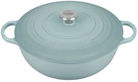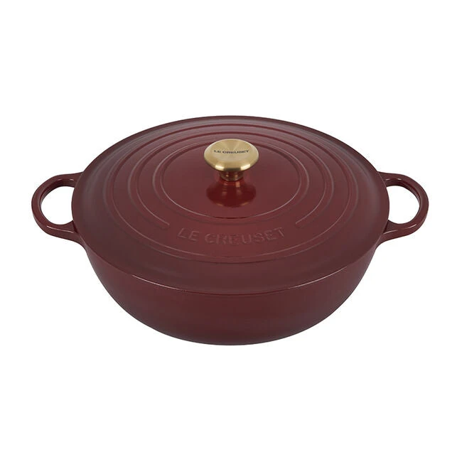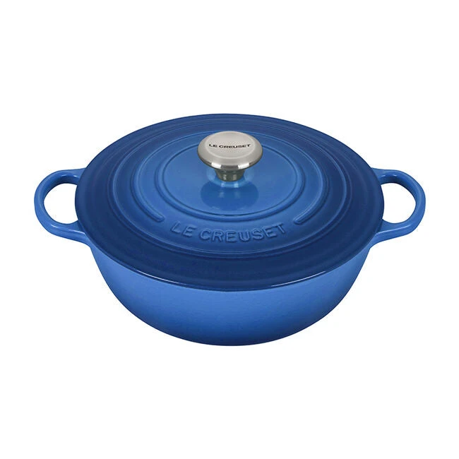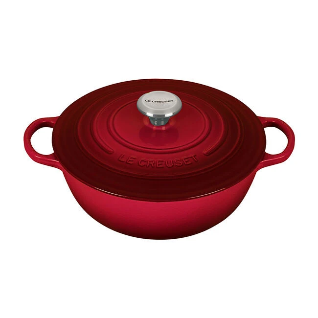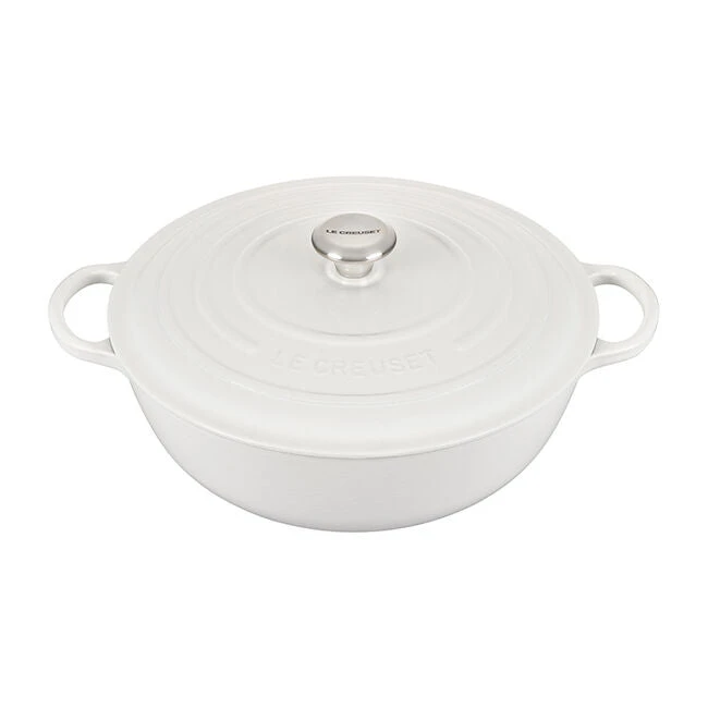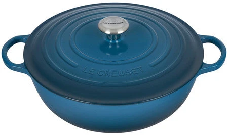The generous size and depth of the Signature Chef’s Oven make this the ideal vessel for soups, pastas, braising and even baking. Sloped sides increase the efficiency and effectiveness of stirring by promoting continuous movement even with the lid in place, and the depth provides ample room for simmering. The exceptional heat distribution and retention of enameled cast iron locks in flavor, while large loop handles are designed for easy lifting and provide a steady grip when transferring a full pot from stove to oven to table. Durable and easy to clean, the colorful enameled surface requires no pre-seasoning and minimizes sticking and staining.