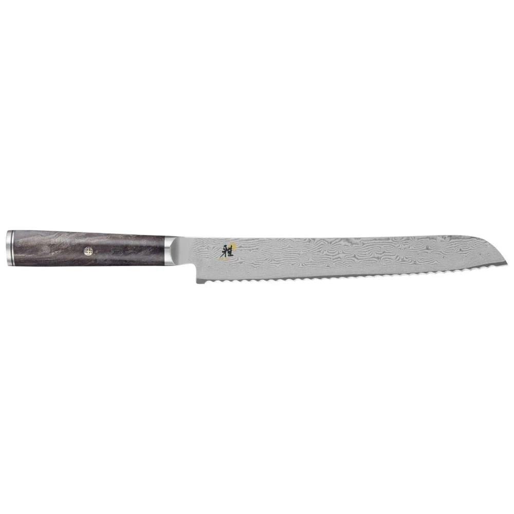 Black Bread Knife, 9.5″, 133-layer micro-carbide powdered MC66 steel blade with Damascus pattern, D-shaped black ash handle, made in Japan
