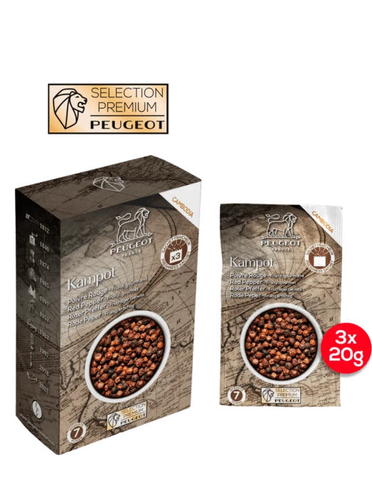 Red pepper is meticulously harvested, peppercorn by peppercorn. Only fully ripe peppercorns are used to produce Kampot’s pride and joy. The result is an enchanting red pepper with fruity and indulgent aromas, as well as hints of citrus fruit and an exceptionally long-lasting taste in the mouth.