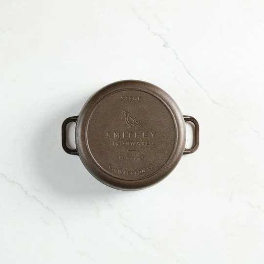 Smithey’s Dutch oven family continues to grow with the new 7.25 Quart Dutch Oven. Designed with a wide base that provides extra surface area for searing and browning meats or vegetables, this Dutch oven is perfect for slow cooking, frying, roasting, braising, and baking. The large capacity is ideal for cooking for families of 5 or more. Featuring Smithey’s signature polished interior surface that is naturally non-stick and easy-to-clean, this Dutch oven is complete with a surface finish that will never crack or chip – in fact, the interior surface will only get better with use. Crafted for versatility, we designed the lid of this Dutch oven to work as a custom-fit lid for your No. 12 Traditional Cast Iron Skillet for extra convenience. Use it well!